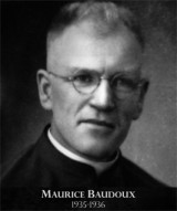 L’abbé Maurice Baudoux est originaire de La Louvière, en Belgique, et s’établit à Prud’homme en 1911, où il devient le curé de la paroisse Saint Donatien et Rogatien. Il sera plus tard évêque du diocèse de Saint Paul, en Alberta, puis archevêque du diocèse de Saint-Boniface. En 1941, au presbytère de Prud’homme, une réunion de représentants des Canadiens français de l’Ouest donne le coup d’envoi d’une campagne qui mènera, dix ans plus tard, à l’établissement des quatre stations françaises des Prairies. On se souvient de lui comme le « père de la radio française dans l’Ouest ».