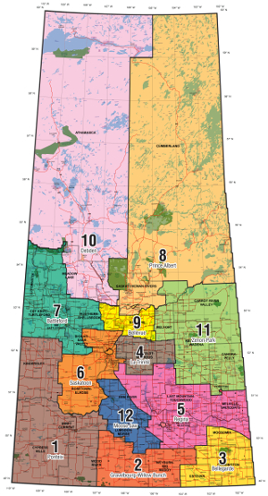 Les villages francophones traditionnels se situent dans trois grandes régions. Un premier foyer francophone se trouve, le long des rivières Saskatchewan Nord et Sud autour des villages, de Duck Lake, de Saint-Isidore-de-Bellevue et de Saint-Louis. Cette zone englobe les villes de Saskatoon, de North Battleford et de Prince Albert. Elle inclut les villages de Saint-Denis, de Vonda, de Prud’homme ainsi que les communautés plus éloignées de Zenon Park, de Saint Brieux, de Debden et de Delmas.